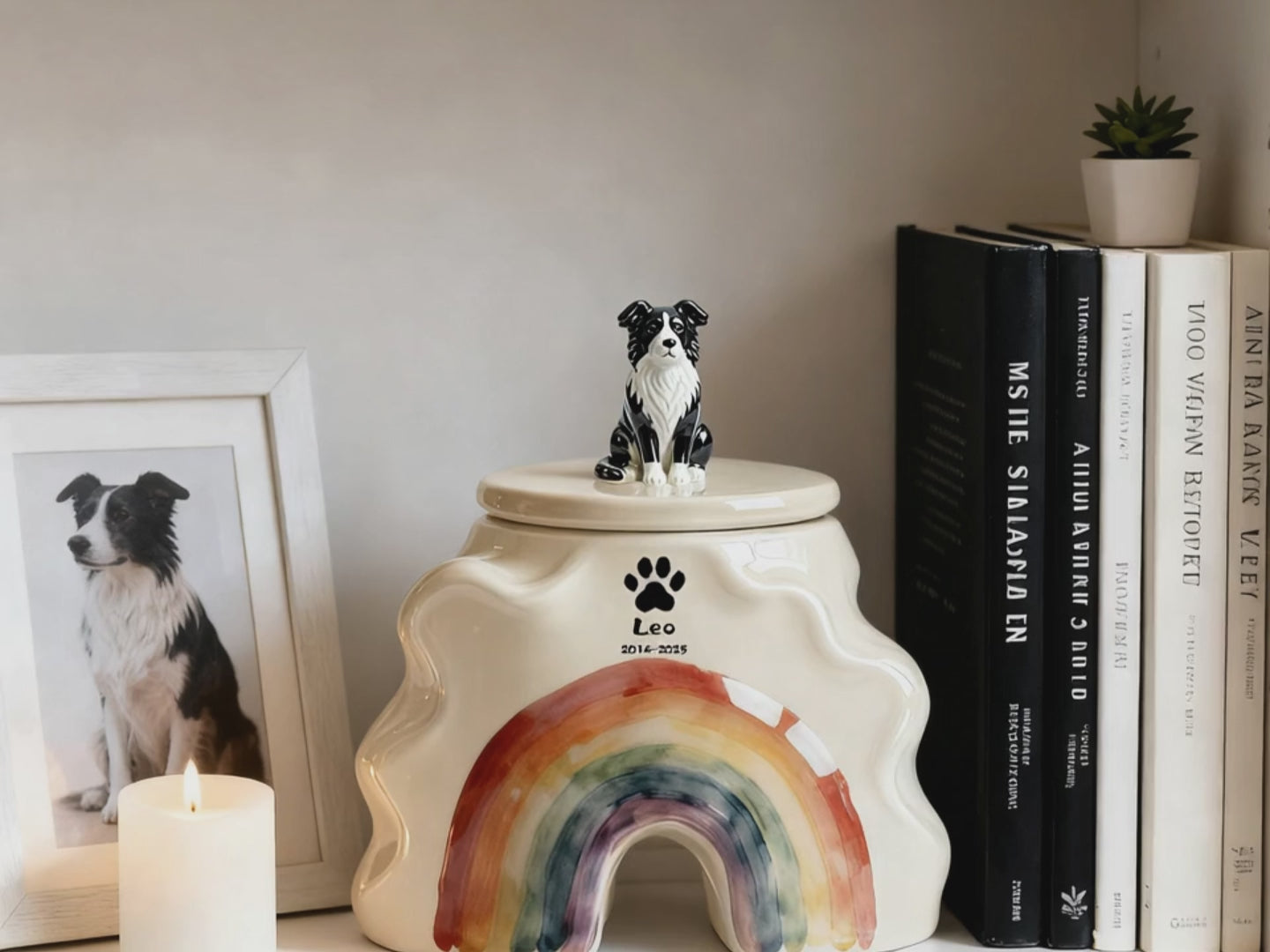 Tailor - Made Border Collie Pet Urn - Honor Daisy's Journey 2015 - 2025 with Delicate Daisy Blooms