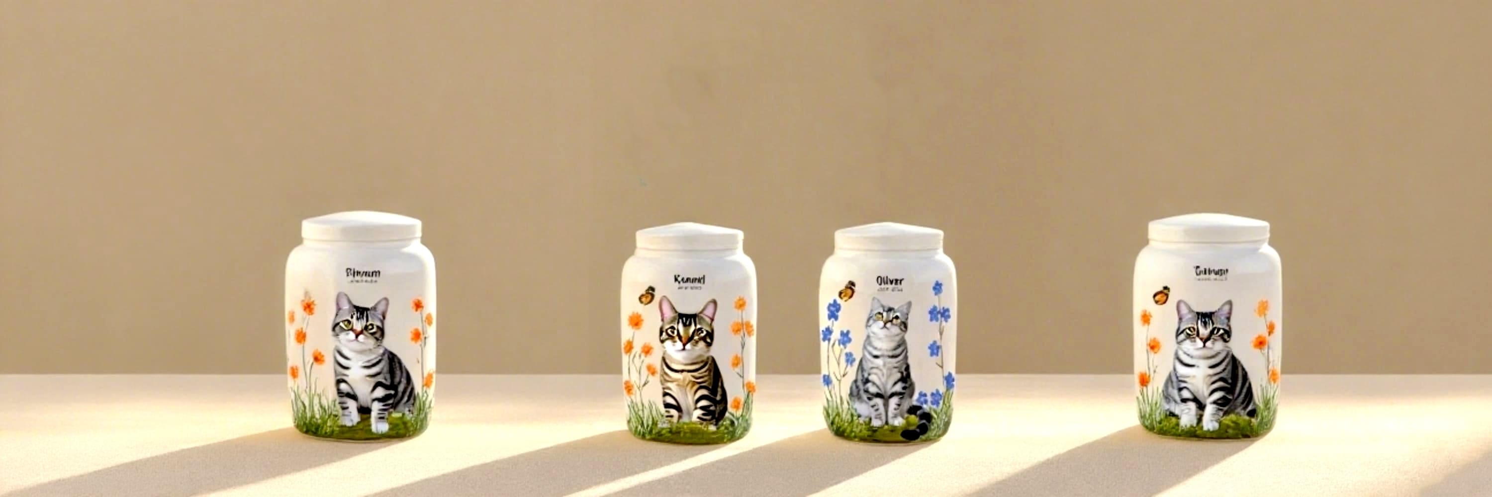 Hand-Painted Personalized Cat Urn,Custom Portrait,Name and Date,Ceramic Urn,Pet Loss Gift