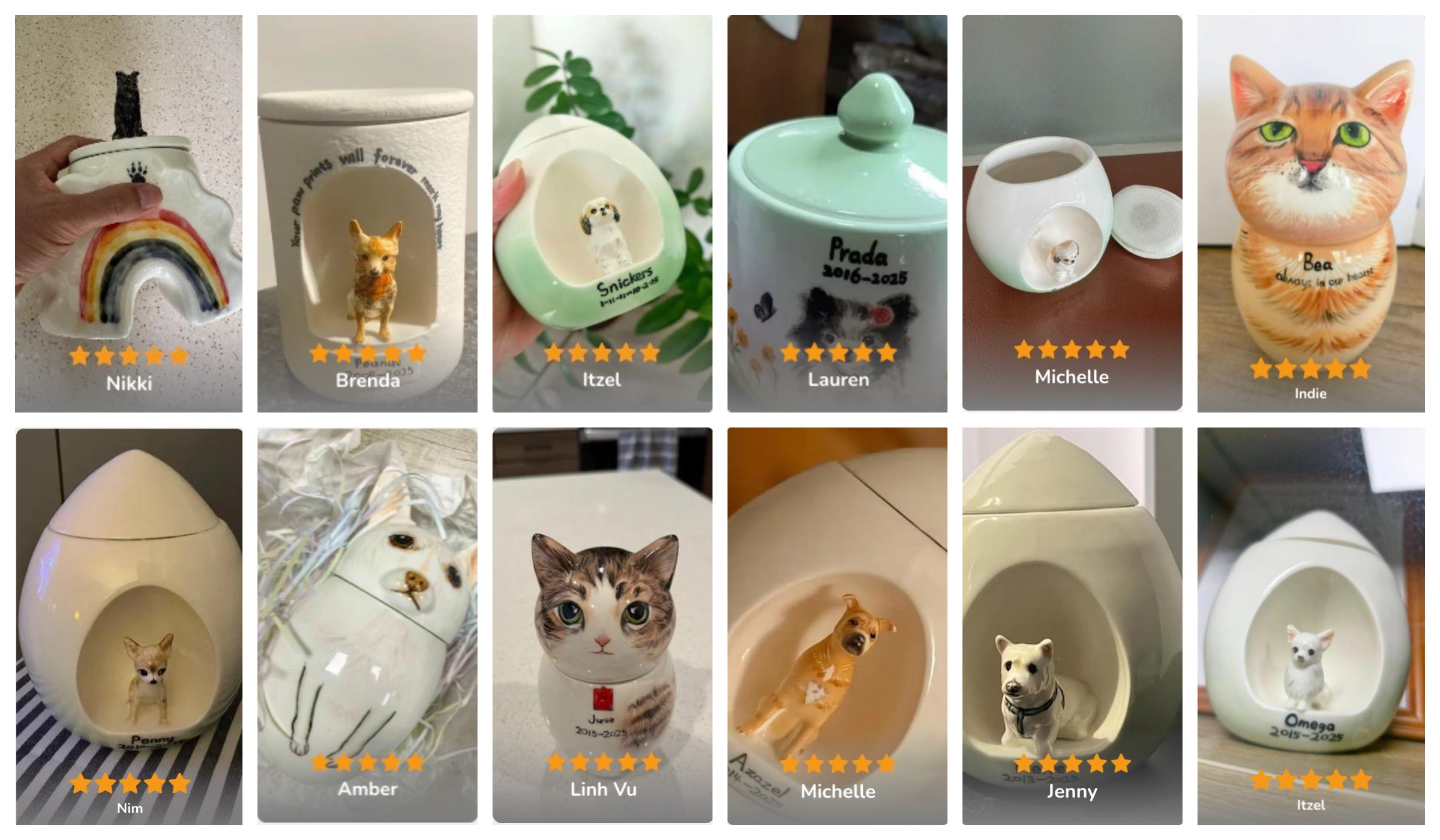 - Each urn is carefully handcrafted as a cat urn for ashes, designed to capture your cat’s unique spirit with a hand-sculpted portrait, custom name, and date.