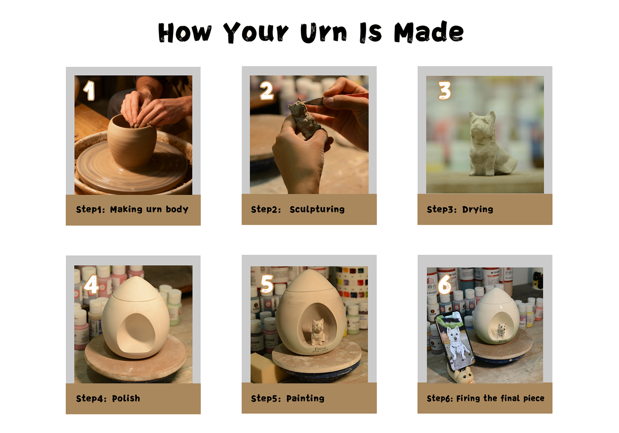 - Each urn is carefully handcrafted as a dog urn for ashes, designed to capture your dog’s unique spirit with a hand-sculpted portrait, custom name, and date.