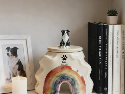 Personalized Dog Urns for Ashes – Hand-Painted Ceramic Rainbow Bridge Memorial, Paw Print, Name & Date,Portrait Figurines,Pet Loss Keepsake